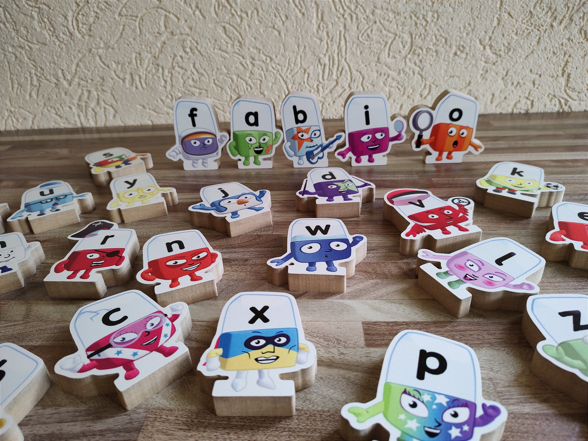 Com os Alphablocks 26 peças em madeira as crianças vão aprender as letras e formar suas primeiras palavras!