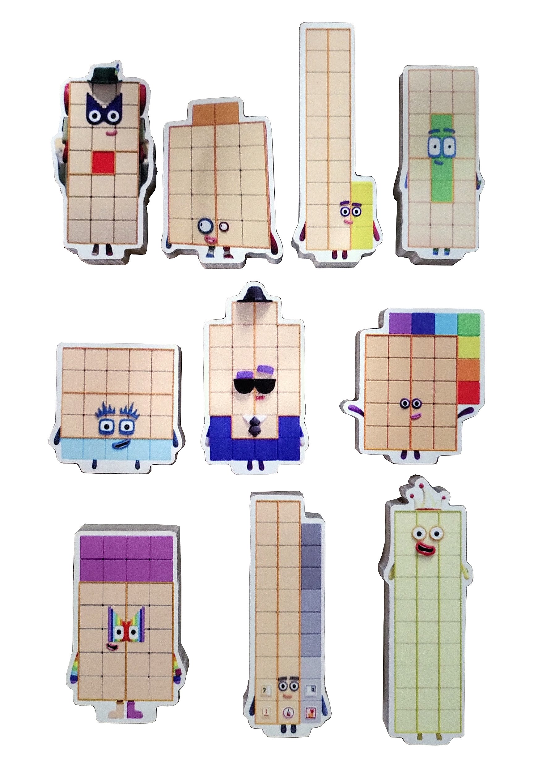 Neste conjunto você receberá 10 personagens em madeira com figuras impressas diretamente neles, o que os tornam muito resistentes!