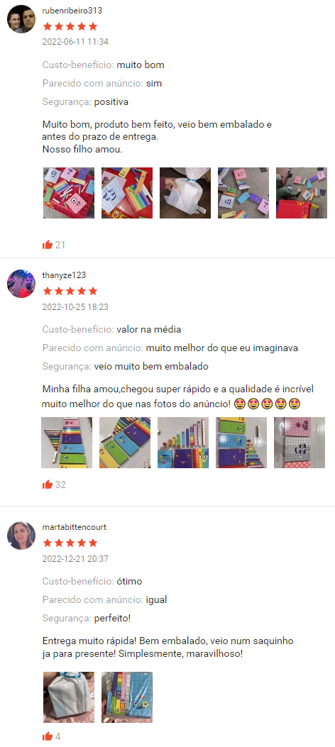 Confeccionados em Madeira, os Numberblocks recebem a estampa por impressão diretamente sobre os blocos, tornando-os resistentes e duráveis.